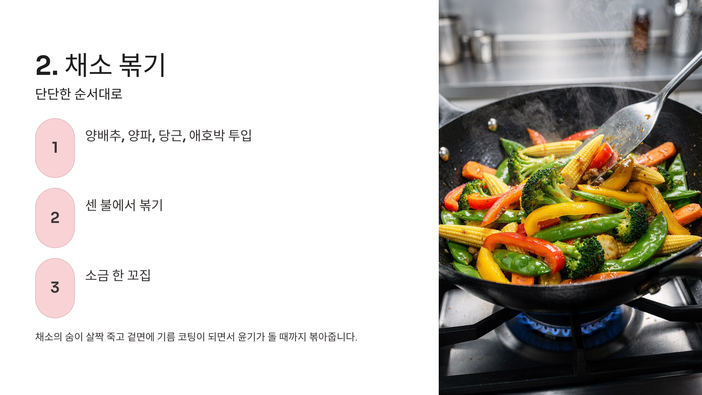2. 채소 볶기 (단단한 순서대로)