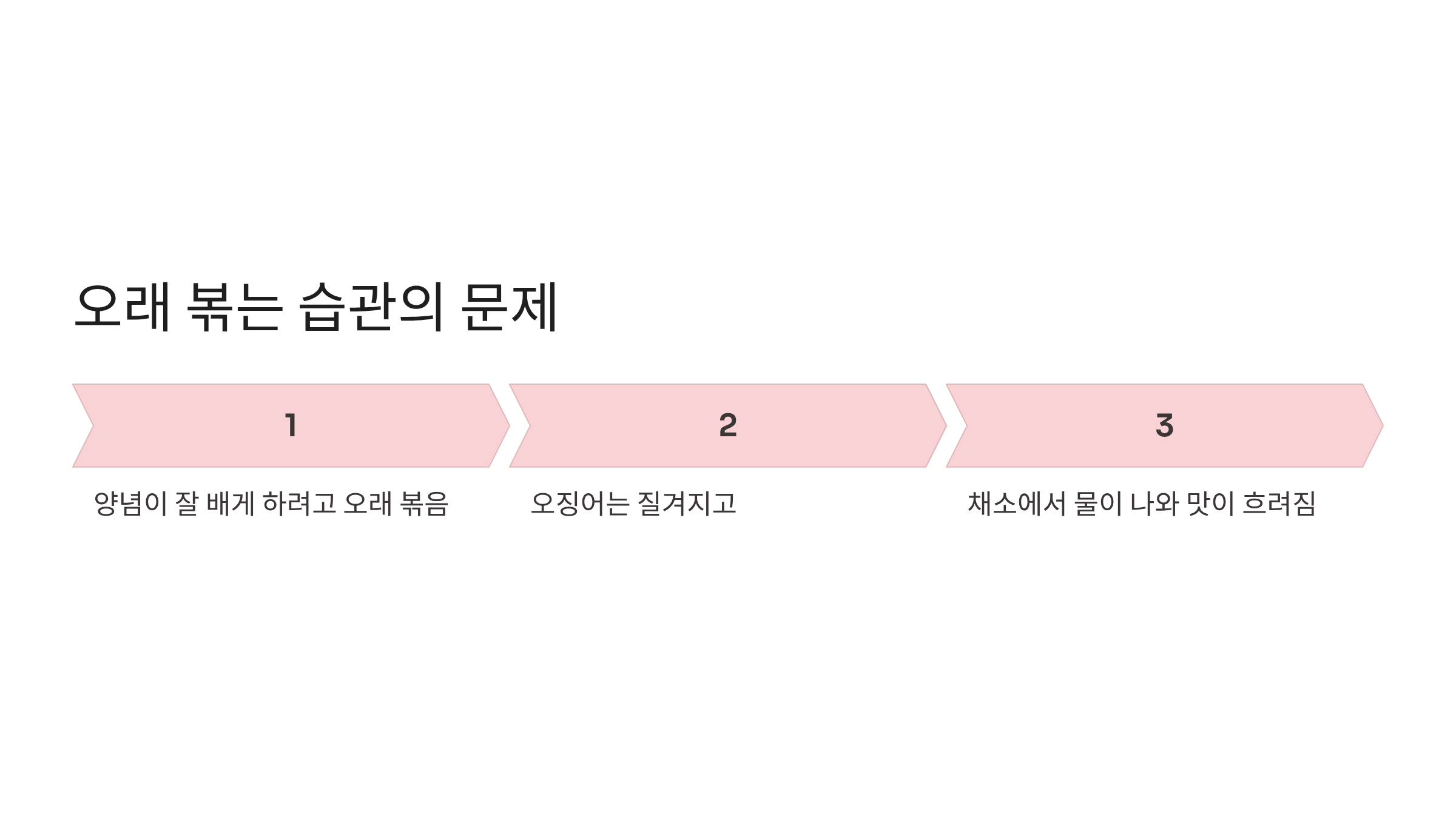 잘못된 조리 순서: 재료를 한꺼번에 넣고 볶으면 온도가 급격히 떨어져 찜처럼 되어버립니다.