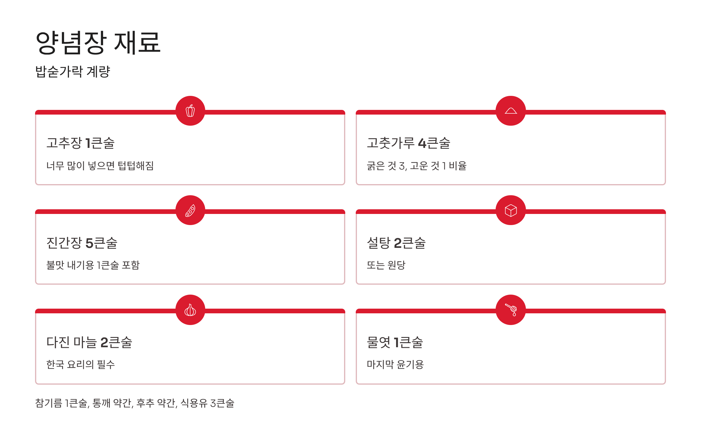 양념장 재료 (밥숟가락 계량)