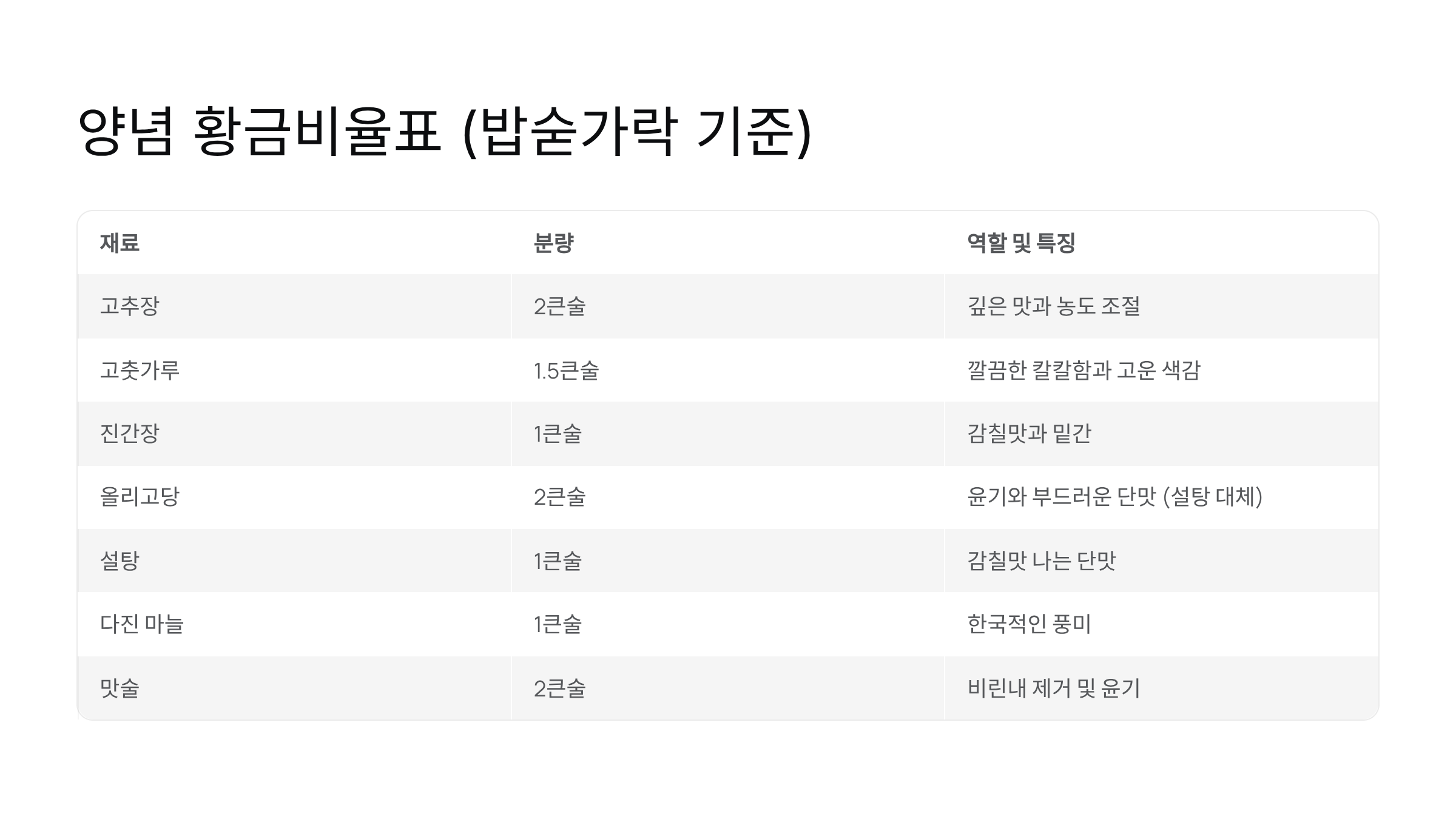 양념 황금비율표 (밥숟가락 기준)